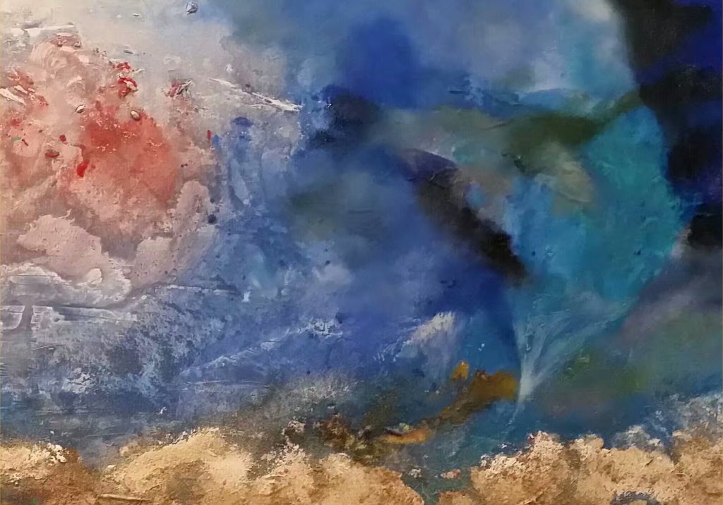 Au regard des œuvres de l’artiste MICHEL TONG, on pourrait rappeler des lumières qui pénètrent à travers des nuages, les caprices des nuages, comme des vagues de plus en plus pures, on pourrait évoquer des images comme concentration des nuages avant l’orage ; on pourrait représenter une brume épaisse qui rampait dans la vallée, le fleuve qui tourbillonne ; on pourrait se figurer le mystère des étoiles, des nébuleuse spirales et l’évolution de l’univers ; on pourrait se souvenir de l’éclat de la soie avec sa brillance ; on pourrait faire revivre la nature, le monde en miniature …